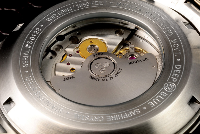 מנגנון: אוטומט, Miyota 9100 Automatic Movement - Month, Day, Date, 24hour + Power reserve